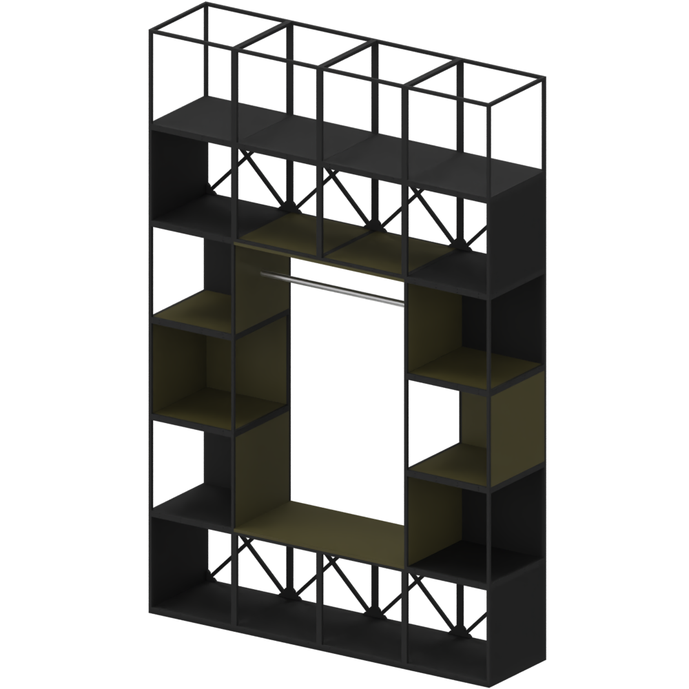 • Integreret bøjleholder i midten er omgivet af 40×40 hylder, så tøj og sko kan opbevares i bunden.