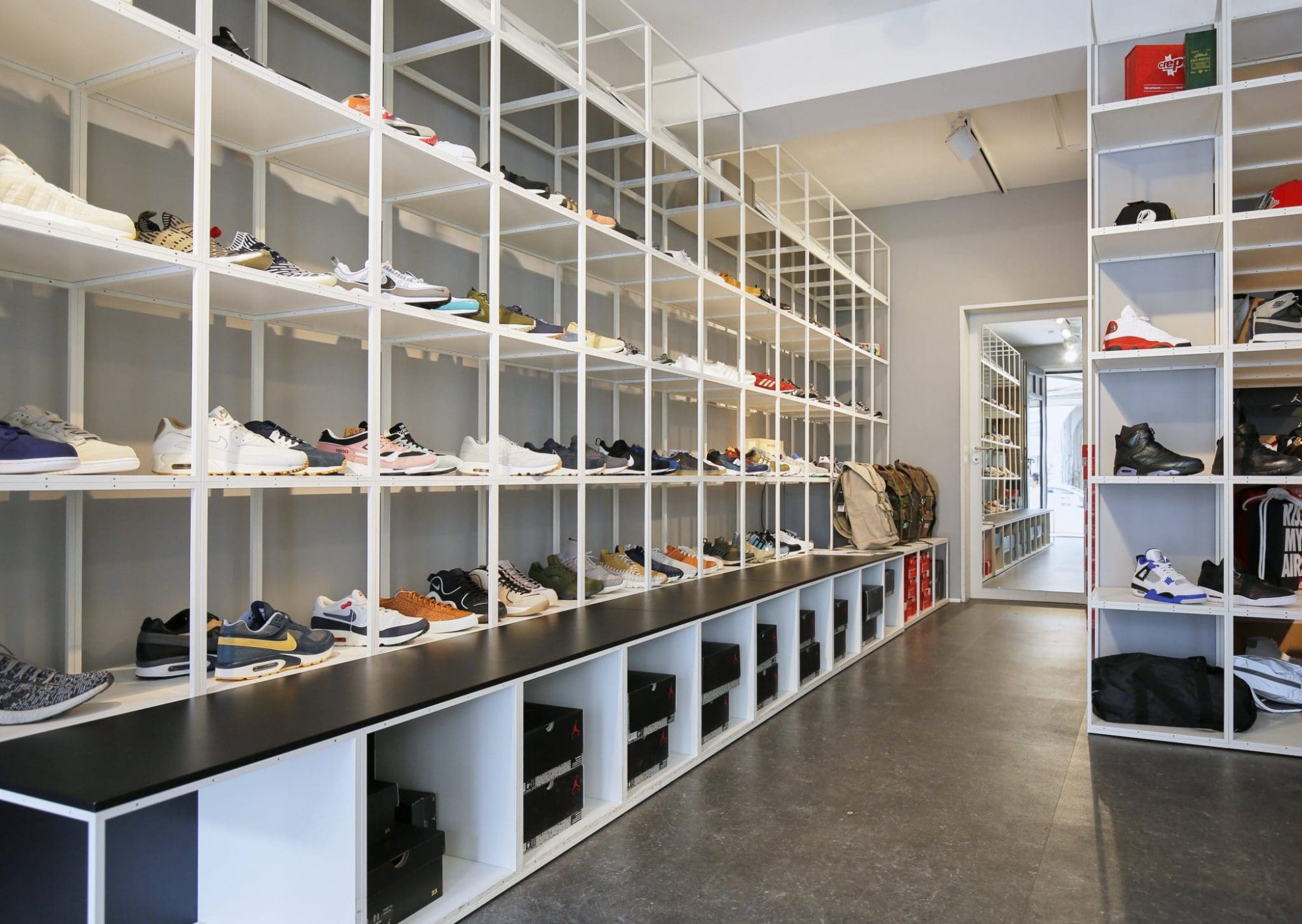 GRID n’est pas seulement un système d’étagères – c’est une boîte à outils de conception qui peut être utilisée dans l’ensemble de l’agencement du magasin – c’est-à-dire de la vitrine du magasin phare aux étagères de produits dans le magasin lui-même et aux étagères de stockage dans les arrière-boutiques – quoi qu’il en soit, le système brille en tant que plate-forme esthétique pour la narration tout en étant fonctionnel et flexible dans son rôle de système de stockage et d’étagères.