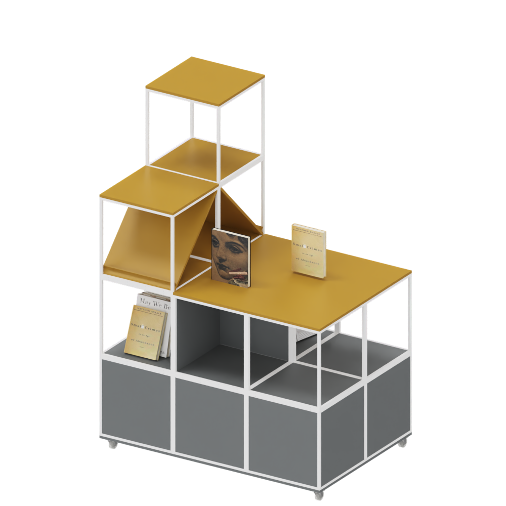 Display podium with multiple levels for a varied dispaly. Perfect for product display fx. in shoe shops, or for libraries for book display on a mobile unit.